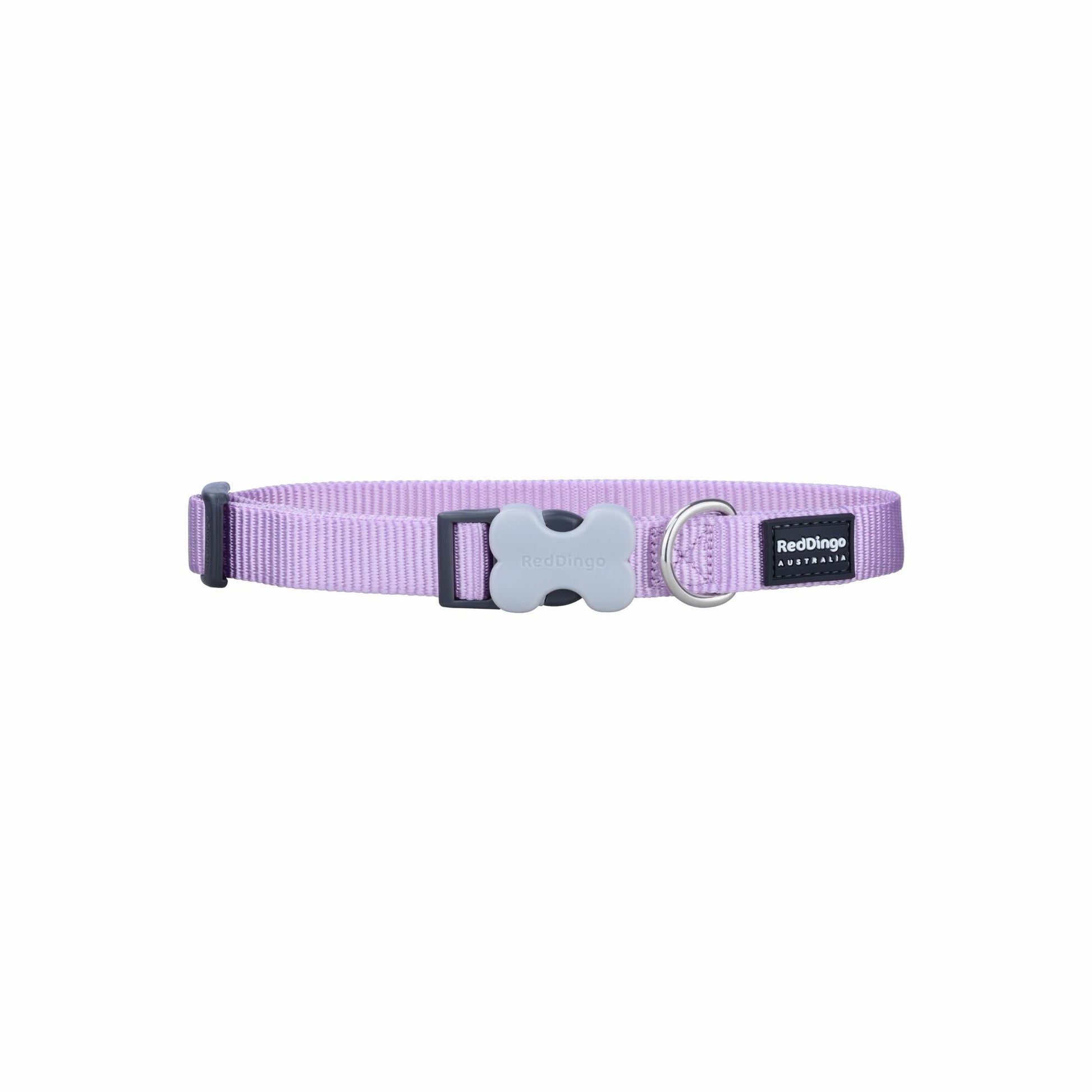 Collier Red Dingo Basic réglable en nylon résistant. Équipé d'un anneau en inox et d'une fermeture plastique brevetée en forme d'os. Haute qualité, disponible avec laisse et harnais assortis pour un ensemble coordonné.